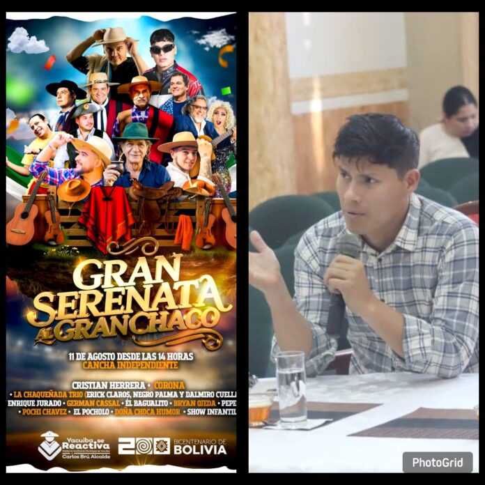 Durante una sesión del Concejo Municipal transmitida en vivo, el concejal Velázquez denunció que el Gobierno Autónomo Municipal de Yacuiba estaría destinando más de 600 mil bolivianos para la serenata del 12 de agosto, mientras los médicos contratados por el municipio no cobran sus sueldos desde noviembre del año pasado.
